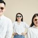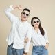 与海边相映衬的色系,搭配经典不过时的镜框