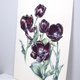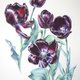 The painting is made in the technique of watercolors on Museum-quality paper. In March 2019, she participated in the exhibition of Botanical paintings and illustrations "Spring is not far off" in the Apothecary garden of Moscow state University.These charming, mysterious black tulips… Dreaming of spring, I immediately thought of colorful tulips fluttering in the wind.. But it was the black ones that bothered the artist. So many interesting stories are connected with this flower and its appearance. Where do you think the Tulip comes from? We immediately imagine the Netherlands, but in fact the birthplace of tulips – Greece. The earliest references are found in the literary works of Persia 6-7 centuries. Here this flower was called "dulbash" or "turban" (turban). From Persia, the Tulip went to Turkey, where the sultans held festivals in their gardens in the evenings and released turtles into the Tulip fields. A lighted candle was tied to the shell of each turtle. Turtles crawled among the tulips, lighting up the flower cups. It was a magnificent sight! And only in the 16th century, thanks to the Ambassador of the Austrian Emperor, a batch of Tulip bulbs gets to the Vienna garden, the Director of which was a botanist from Holland. And in 1570, he returned to his homeland, taking with him the tulips. So the tulips got to Holland, where they were destined to find a great fame.