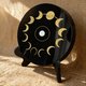 黑曜石制成的 12×12×2cm 圆盘,盘面以激光雕刻出一圈十二月相图案,再以手工描上细致金线,中央镶嵌一颗圆润白水晶,像月亮核心一般静静发光。