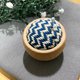 小巾绣针插采用了金丝的绣线,透着淡淡的金光搭配简单的图案,让你的针线工具与众不同。除了可以存放针线外,针插也可以作为桌面装饰,方便实用。