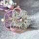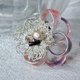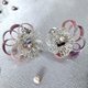 在金属线编织的花上点缀淡水珍珠和珠饰,