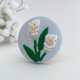 这是一款以清晰的白色线条,绣出美丽曲线的胸针。正因为是简约的花朵,才更显其细腻之处。