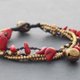 这是用深棕色棉花打蜡的绳子编织的手工编织手链,与珊瑚,黄铜珠,链条和黄铜刺绣铃一起编织。关闭使用黄铜钟 ♥手镯尺寸7英寸长♥ 运输 : 泰国航空邮件在付款后1-2天内发货。通常需要7-21个工作日才能到达目的地。