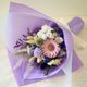 .白色棉花搭配非洲太阳花及紫太阳玫瑰及紫白色系干燥花代表青春转向成熟