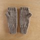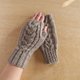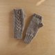我用小羊草泥马和羊毛纱线的混合物编织了带有阿兰图案的暖手器。