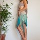 蓝绿色弹性腰围部落风短裙。饰有布编绳、流苏及叶片。