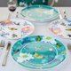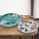 中国风的经典设计,将代表富贵的牡丹,翩翩飞舞的美丽蝴蝶悠游嬉戏于花丛之中,绽蓝绿色的12寸底盘加上白色底的10寸盘,摩登中国的色彩设计,既古典又时尚,是喜爱时尚中国风居家餐盘的您绝对要入手的骨瓷盘组。