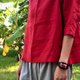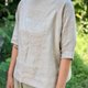 比较少在市面上看到使用亚麻材质来制作这个连袖款式,