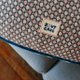 手工缝制,边缘缀以纯手工纺织古布,背面是大衣材质的人造纤维,温暖又带着华丽缤纷的视觉感。
