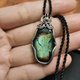 芬兰拉长石的特色是有着碳黑色的矿体,色彩透过深邃的晶体展现出神秘的光芒,由我形容的话,感觉像黑夜中灵动的动物之眼