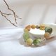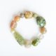 【特徴】使用了多彩的天然晶石制作的手串。晶石上的花纹各种各样,有樱花树、松树、青苔、泥土等,配合上雕刻成狮子的阿拉善玛瑙,让人能感受到大自然美好的作品。手串具有情景,具有温度,捧在手犹如微风吹拂一样,滋润和治愈着内心。