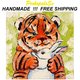 100% 小老虎画兔子画动物原创艺术 10 x 10 英寸 (25,4cm х 25,4cm) 专业油画