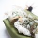 透明感的欧根纱,和绿色的纱线一起编织进去来加强印象。