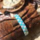 天然手工切割的白贝母和人工松石相拼,表带和表面做了一样感觉的拼砌,有趣可爱的款。