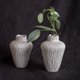 使用雾白的瓷土、每笔手工切割的纹理、最朴质的触感,简约的花器原貌,褪去多余的缤纷霓虹灯彩,静静地摆放柜子、茶几,不用言语表达,却极致衬托花与叶的姿态。