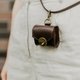 由厚实耐用的黑色天然皮革手工制作的airpods保护套,同时配有细皮绳和黄铜色金属链条。使其可任意佩戴在胸前或斜跨在侧身,保护套上的挂钩则可使其直接作为包袋的挂件。