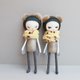 材料~布、棉花、手脚内有铝线或毛根所以可以弯曲、做出不同的姿势、可坐、可站立~
