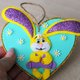 This bunny is handmade from colored Eve foam. To create a cheerful holiday mood. The bright ornament will attract your child's attention.