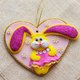 Decorated wooden heart in the form of a happy bunny. Suitable for decorating the nursery. Or just for a fun gift for the New Year of the rabbit or for Easter.
