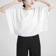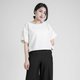 - 倒梯形版型、短版设计、棉质混纺、裁片剪接设计。