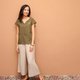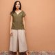 轻薄的棉麻布料透气舒适,半截袖子设计修饰手臂,百搭的版型,配宽宽裤或是裙子、吊带裤都很有气质。