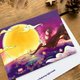 A 5.8 x 4 inch matt 310gsm postcard featuring my illustration Happy Mid Autumn Festival printed on one side. The back is blank for your own message with my details printed on the bottom left hand side.