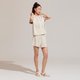 以现代女性为发想,如何温柔低调却永不过时。小A字修身剪裁,丝光棉感的透气面料,搭配两侧出芽,使整体廓形更加立体、有层次;将惬意与A字裙的活泼融入设计,一件简单的短裤,就可以穿出不同的风格态度。