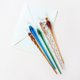 玻璃笔笔身几乎为一体成型,完全没有弹性且无法勾勒具有粗细变化的线条。但适合以描绘或着色技巧表现文字艺术,绘画及书写皆十分流畅好上手!