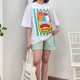 - 套组细节:包含一件白色 T 恤和绿色条纹短裤。