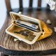 The leather wall at the boundary between the card holder and the combined coin purse space can be opened and closed.