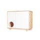 因此我们透过猫咪喜欢钻洞的个性,在有限的范围里创造出上下跳跃的空间,以解决猫落砂的问题。造型上圆角的设计,成功的让猫厕所摇身变成一个独立而具质感的家具。