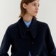 - 这是一件海军式羊毛大衣,设计带有季节性的宽翼领设计。