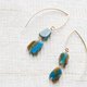 耳针采用切片滚磨蓝蛋白石制成,保留了原石的魅力。