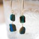 耳针采用切片滚磨蓝蛋白石制成,保留了原石的魅力。 搭配大榄尖形钩。 黄蓝与棕混合,看起来就像您在化学实验中看到的东西。 它是石。 附硅胶扣。 所有金属部件均为 14K 金 GF。 石的图案发生了变化 如果您有兴趣,请联系我们。