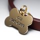 在无镀层黄铜板的正反面,深深刻上文字的骨头造型宠物名牌。