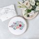 – Sample shown here was made on 18 count white aida and framed in a 9” hoop
