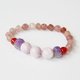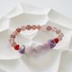【特征】运用了形状各异的天然晶石制成的晶石手串。赤红色的草莓晶与红玛瑙包裹着紫晶,整体颜色鲜艳,给人活力与动力。长期佩戴能帮助人养生和理疗。能治愈身心,提升人的各种运气。