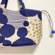 选用日本进口印花棉布,里布搭配几何图形或素面棉布,做成简单小巧手提两用托特包,袋口两边附加羊毛毡球蜡绳,内装物较少时可以打结缩小袋口宽度,东西较多时可使用托特包造型,袋口中央并有磁性铁扣,避免内装物品掉出,充满设计巧思!虽然是手提型的托特包,但平常外出时简单小物都可装入,棉布包轻巧好用,也可避免塞入太多物品造成包包太重而导致腰酸背痛的情形!