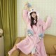 - tntntutu将艺术家清水创作的小熊图案穿在了睡衣上 通身面料选用粉色毛绒面料,胸口有粉色小熊刺绣形象 口袋是蓝色毛绒玩具熊造型设计 整体宽松保暖,花边下摆增添可爱气质