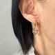 此款圈形耳环的打开方式为:将针脚向下压的同时向上拉开。请将耳环穿过耳洞后,确认“咔嚓”一声固定后配戴。