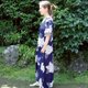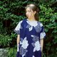 这是一件以蓝色为底、绘有白色绣球花的浴衣改造连身裙。