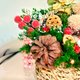 这款“熊熊冬乐”花篮,以雪松和松果为基调,搭配红色与金色的花材点缀,营造出浓厚的圣诞节氛围。右边摆放着一只可爱的圣诞小熊娃娃,仿佛在寒冬中为我们送来温暖的祝福。这个作品不仅充满自然的冬日气息,还展现出节日的欢愉和温馨。无论是摆放在家中、办公室或是作为节日的礼物,这款花篮都能带来满满的圣诞气息与冬季的温暖。