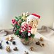 “熊熊冬乐”灵感来自于冬季的自然景色与圣诞节的传统意象。雪松和松果象征大自然的宁静与稳定,而红色与金色的花材则传达出节日的喜悦与活力圣诞。小熊娃娃的加入,为作品增添了一丝可爱和温馨,仿佛在严寒中守护着一份纯真的快乐。这款作品希望传递一种温暖人心的节日祝福,让人在寒冬中也能感受到节日的欢乐与生活的小确幸。