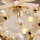 白由透明珠子制成,具有美丽的极光饰面,并装饰有许多圆形圣诞装饰。饰有淡金丝带,与珍珠和金饰物相配。星星形状的装饰品在中间晃来晃去,可爱极了♡