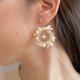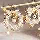 耳朵上再现圣诞花圈的耳针。花环由水晶珠编织而成,并饰有许多装饰。