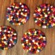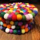一个一个缤纷色彩的球球连接而成的锅垫(其实也可以当杯垫),