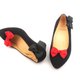 在黑色的高跟鞋上,缀上蝴蝶结,创造一整天的愉悦心情。凡购买蝴蝶结魔鬼毡高跟鞋1双,即赠2组立体精致蝴蝶结(黑色及红色)。鞋面使用特殊设计魔鬼毡布,柔顺不刮手,自由黏贴,重复使用,多变趣味。