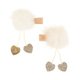 冬天买发饰,就要买毛毛!发夹上加颗毛绒绒的小毛球就瞬间变得好可爱!奶茶色毛球下方挂着两颗金色闪着微光的爱心,其中一个爱心的背面还印有品牌logo喔,戴发夹还能有惊喜寻宝的乐趣哩!