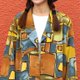 ✔这件特色的区块拼图,有着大地色与蓝色调,是非常好穿搭的色系唷~
