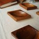 商品特色说明:此为老件,自然风格木纹理/独特斜边四角形小木盘/有些许刮痕不影响使用/一组售